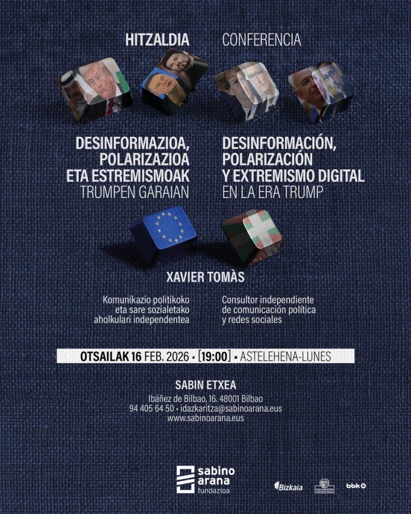 Conferencia: «Desinformación, polarización y extremismo digital en la era Trump» / Hitzaldia: «Desinformazioa, polarizazioa eta estremismoak Trumpen garaian» (Sabino Arana Fundazioa)