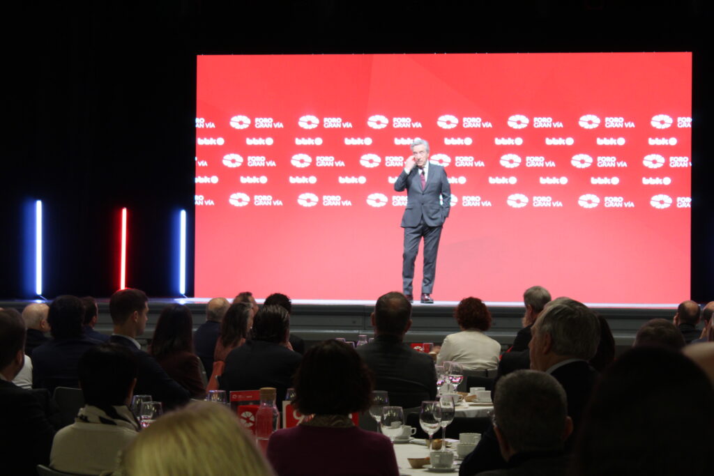 El periodista Iñaki Gabilondo ha participado este miércoles 18 de marzo en un desayuno informativo del Foro Gran Vía celebrado en la Sala BBK de Bilbao; un encuentro que ha reunido a representantes institucionales, responsables políticos y profesionales de la comunicación.