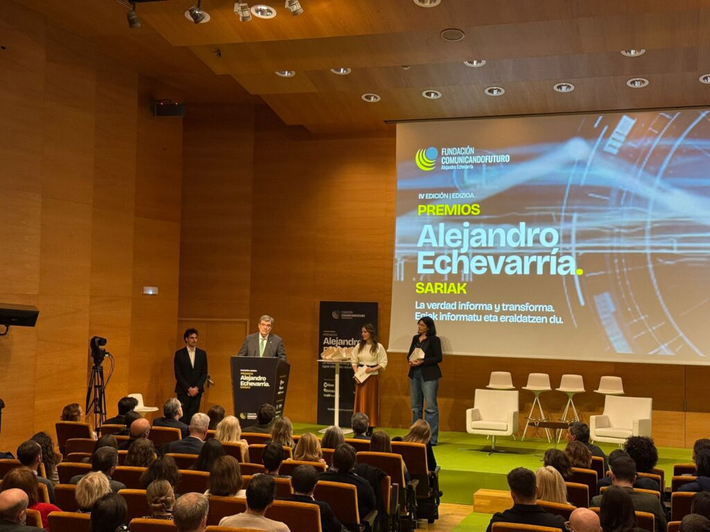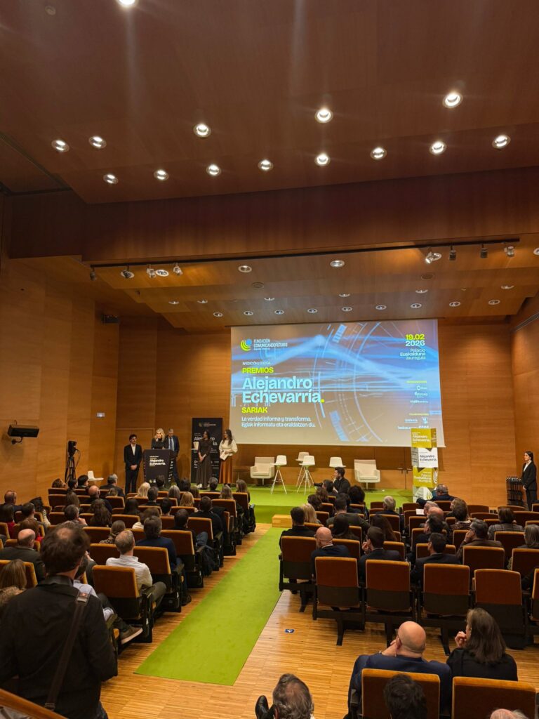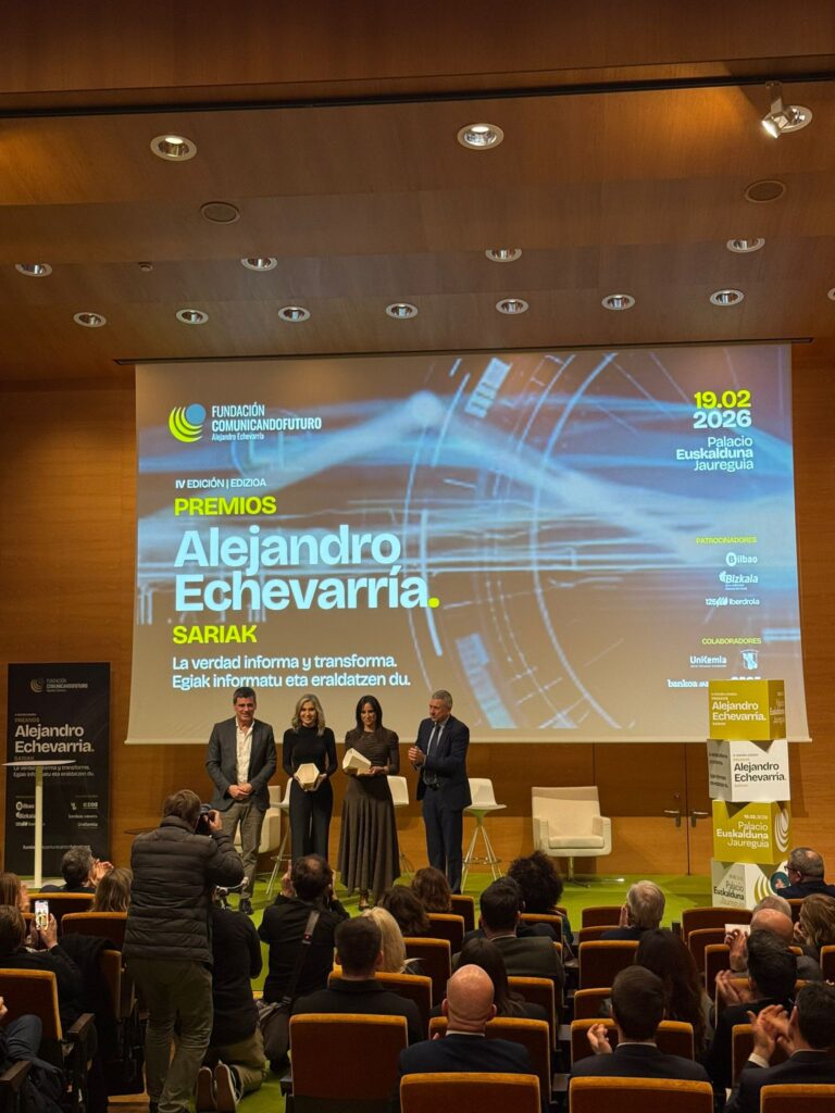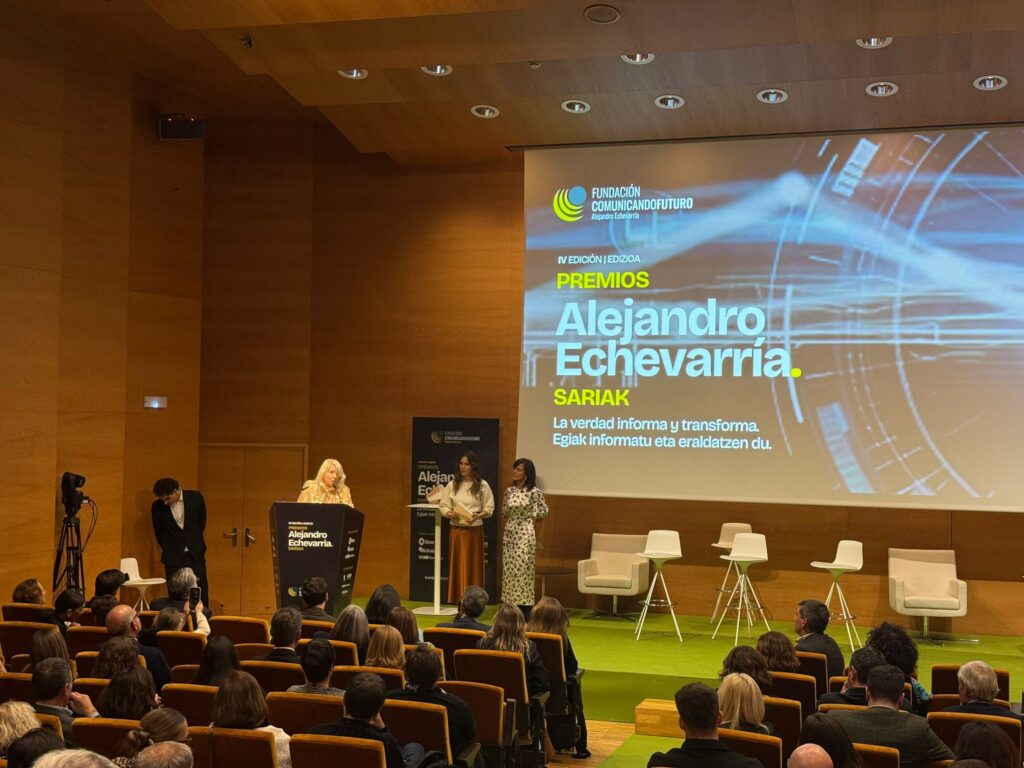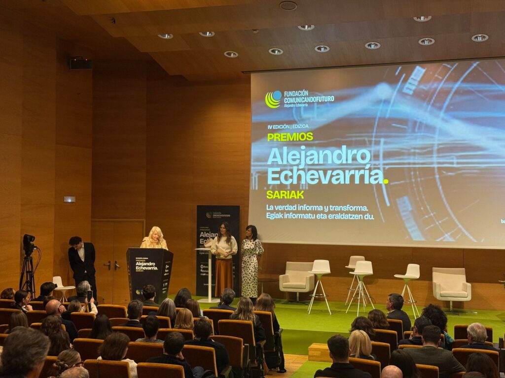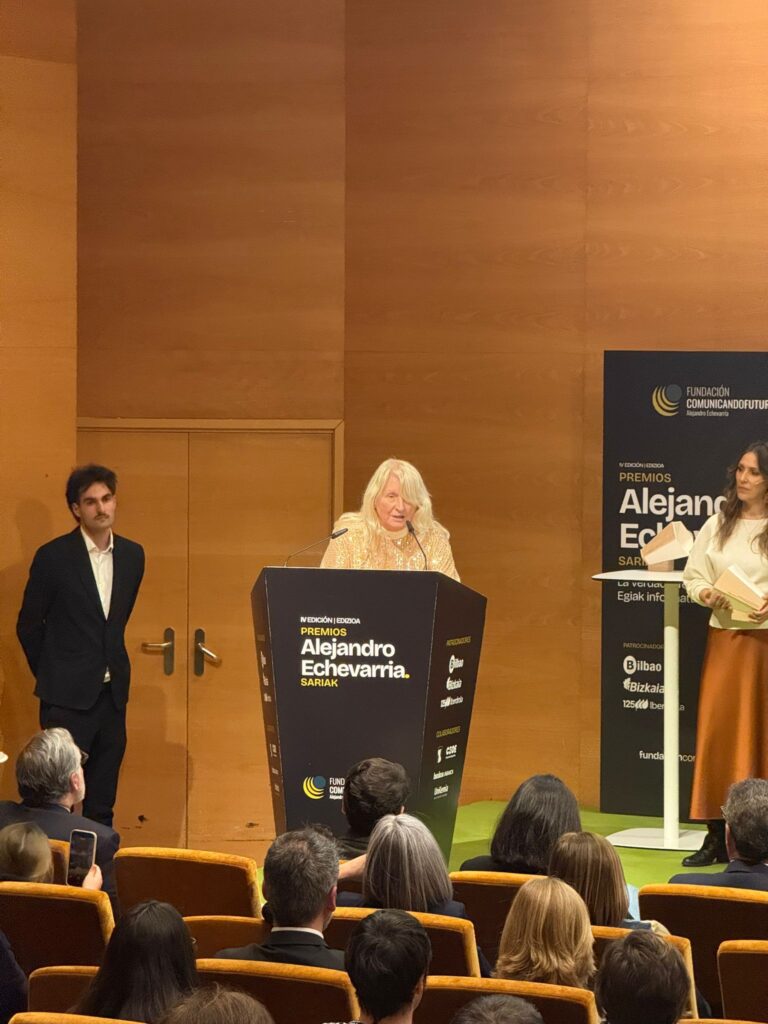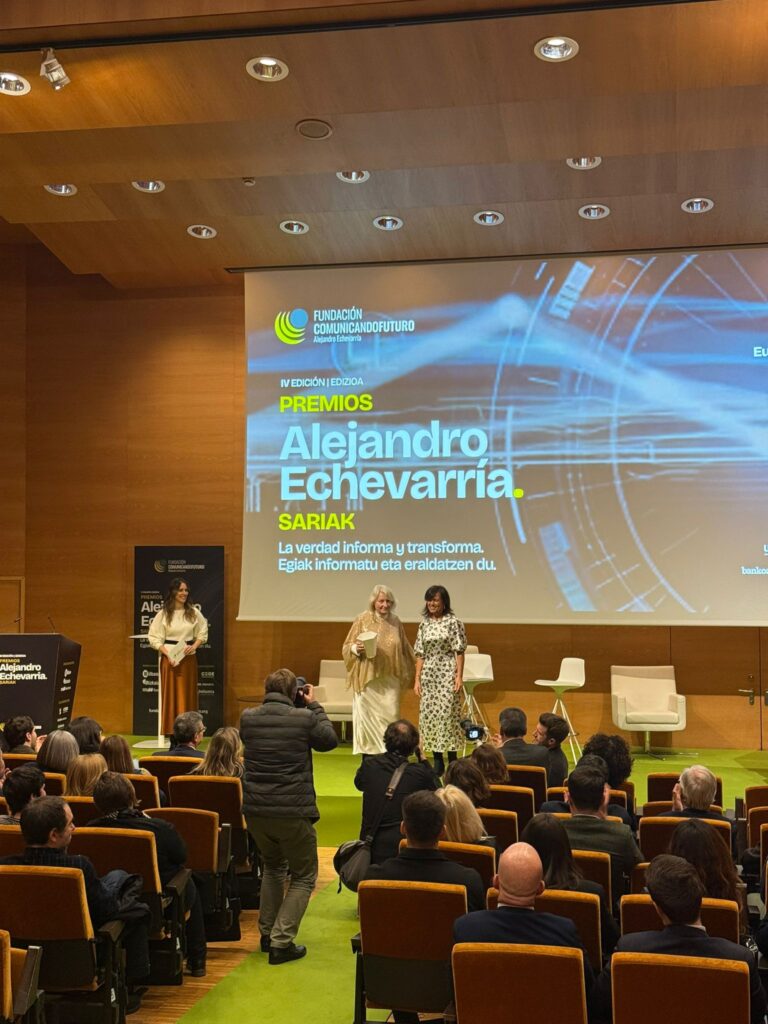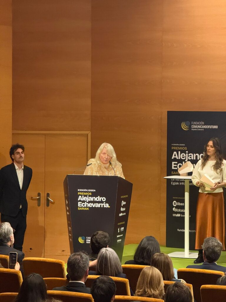 La Decana y Presidenta de la Asociación y el Colegio Vasco de Periodistas, Amaia Goikoetxea, recogió ayer el Premio Internacional a la lucha contra la desinformación que la Fundación Comunicando Futuro Alejandro Echevarría ha otorgado a la BBC en esta edición.