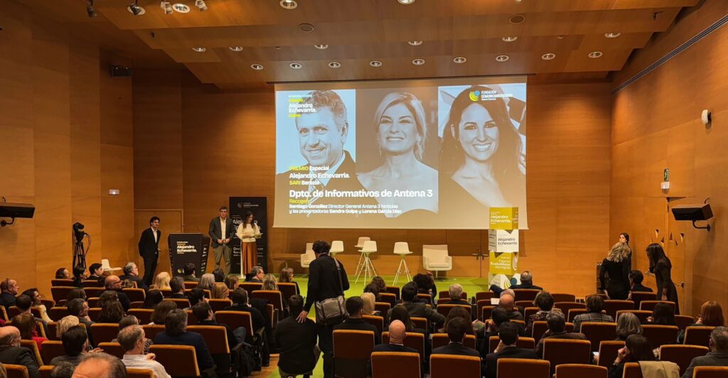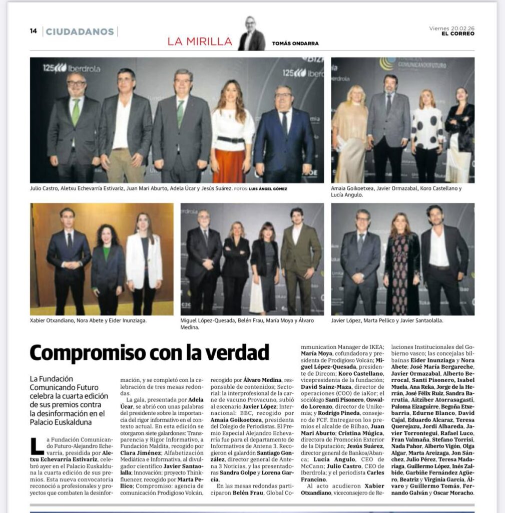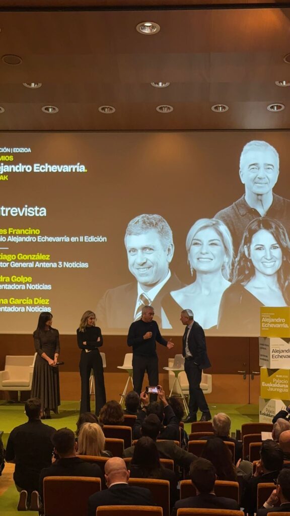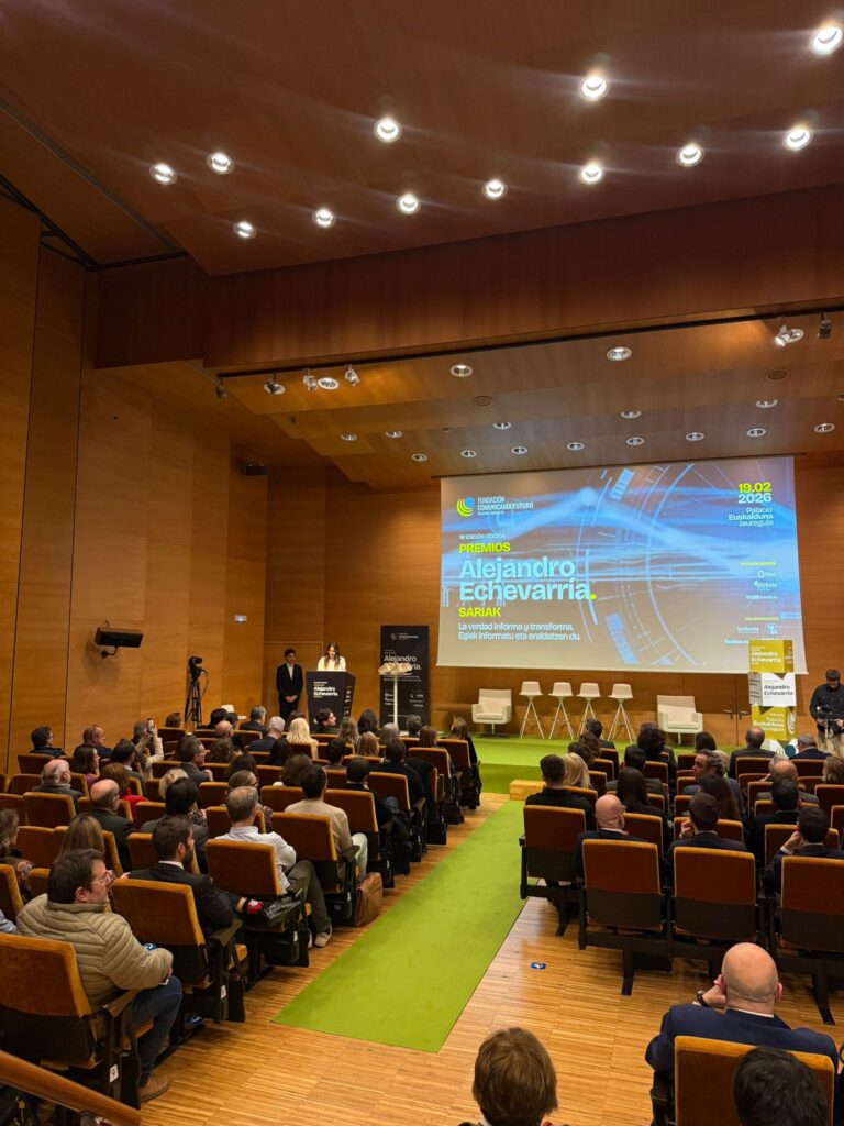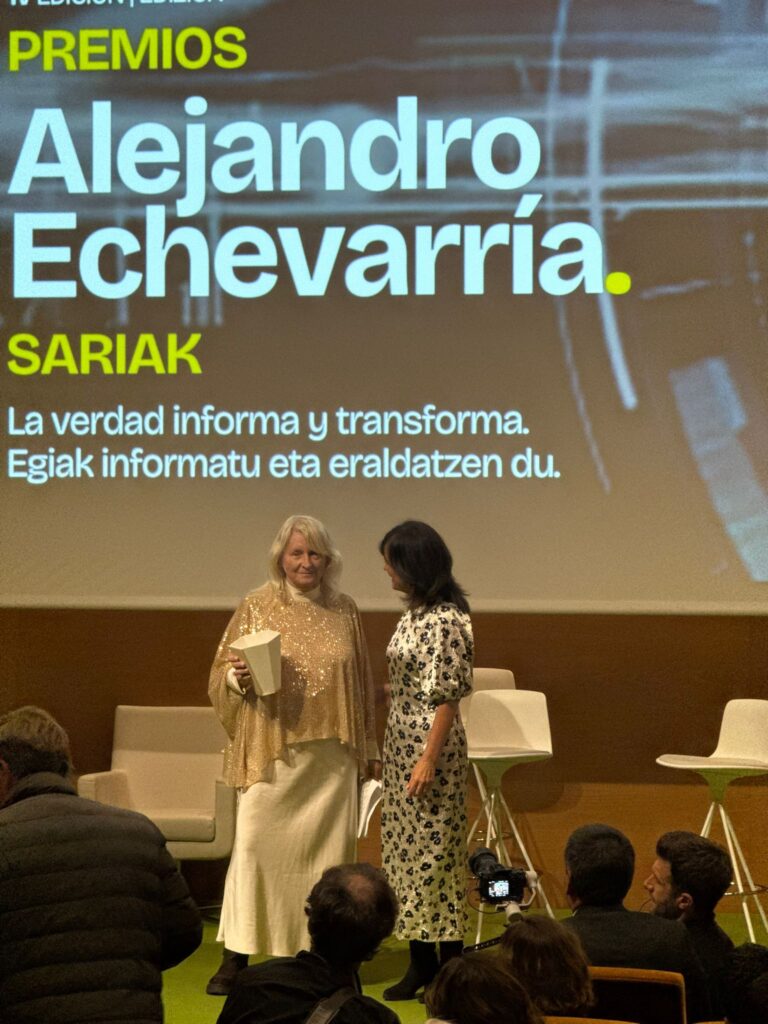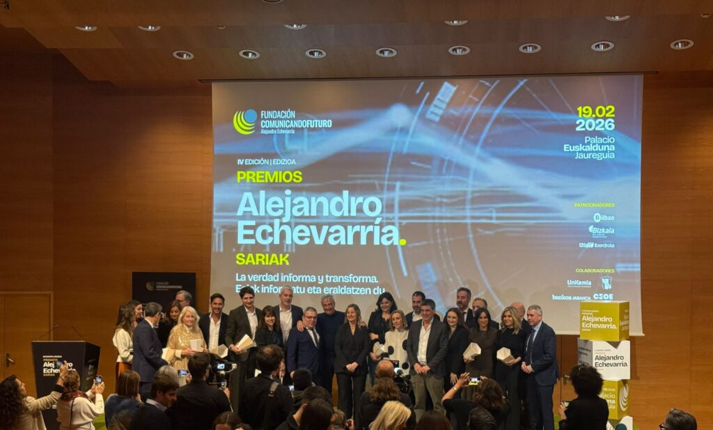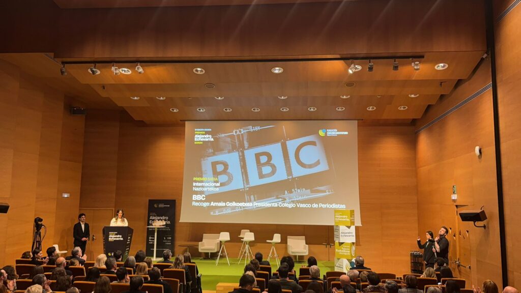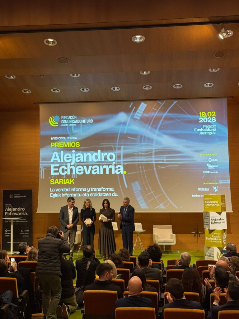 La Decana y Presidenta de la Asociación y el Colegio Vasco de Periodistas, Amaia Goikoetxea, recogió ayer el Premio Internacional a la lucha contra la desinformación que la Fundación Comunicando Futuro Alejandro Echevarría ha otorgado a la BBC en esta edición.