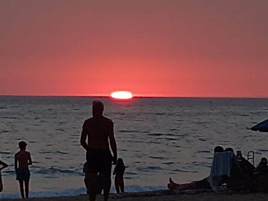 Aquella mañana la marea en la playa de Zahara de los Atunes  había formado un desnivel en la orilla que hacía que las olas rompieran con brusquedad, dificultando la entrada de los bañistas a los que hacía perder el equilibrio revolcándolos  en la arena caprichosamente.